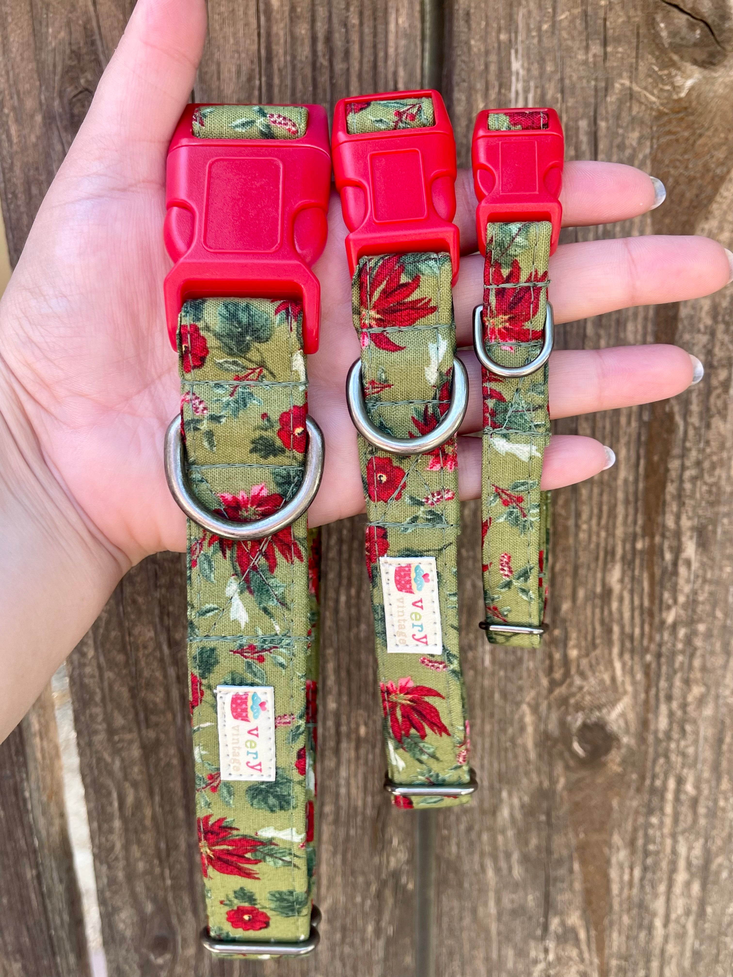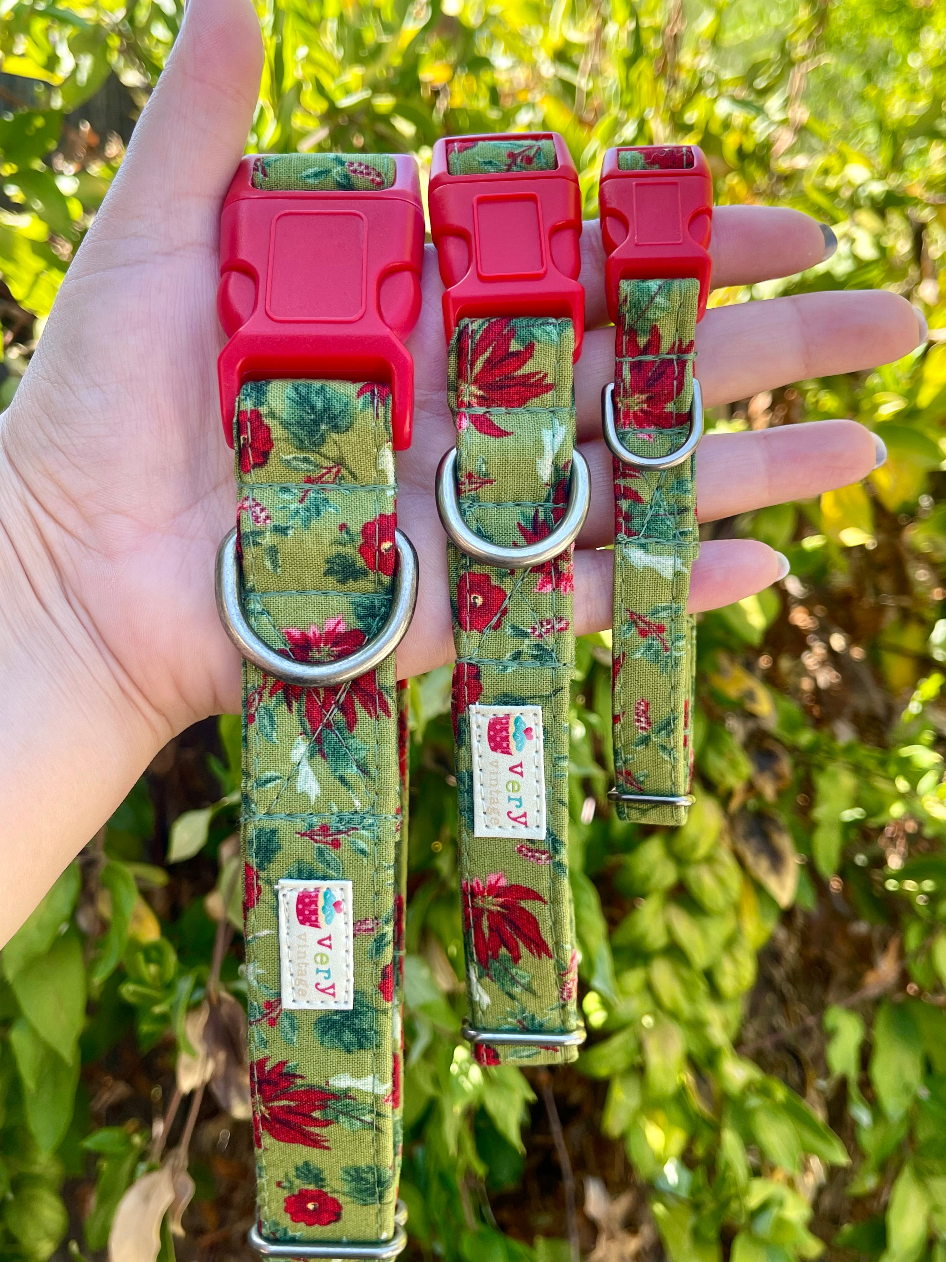 Turn your pet into the star of the season with our Amaryllis collar! ๐บโจ This festive floral design features bold red blooms and greenery on a soft olive background, complete with a bright red buckle for a merry pop of color. Handmade in Los Angeles with organic cotton webbing, this collar blends classic holiday beauty with everyday durability.