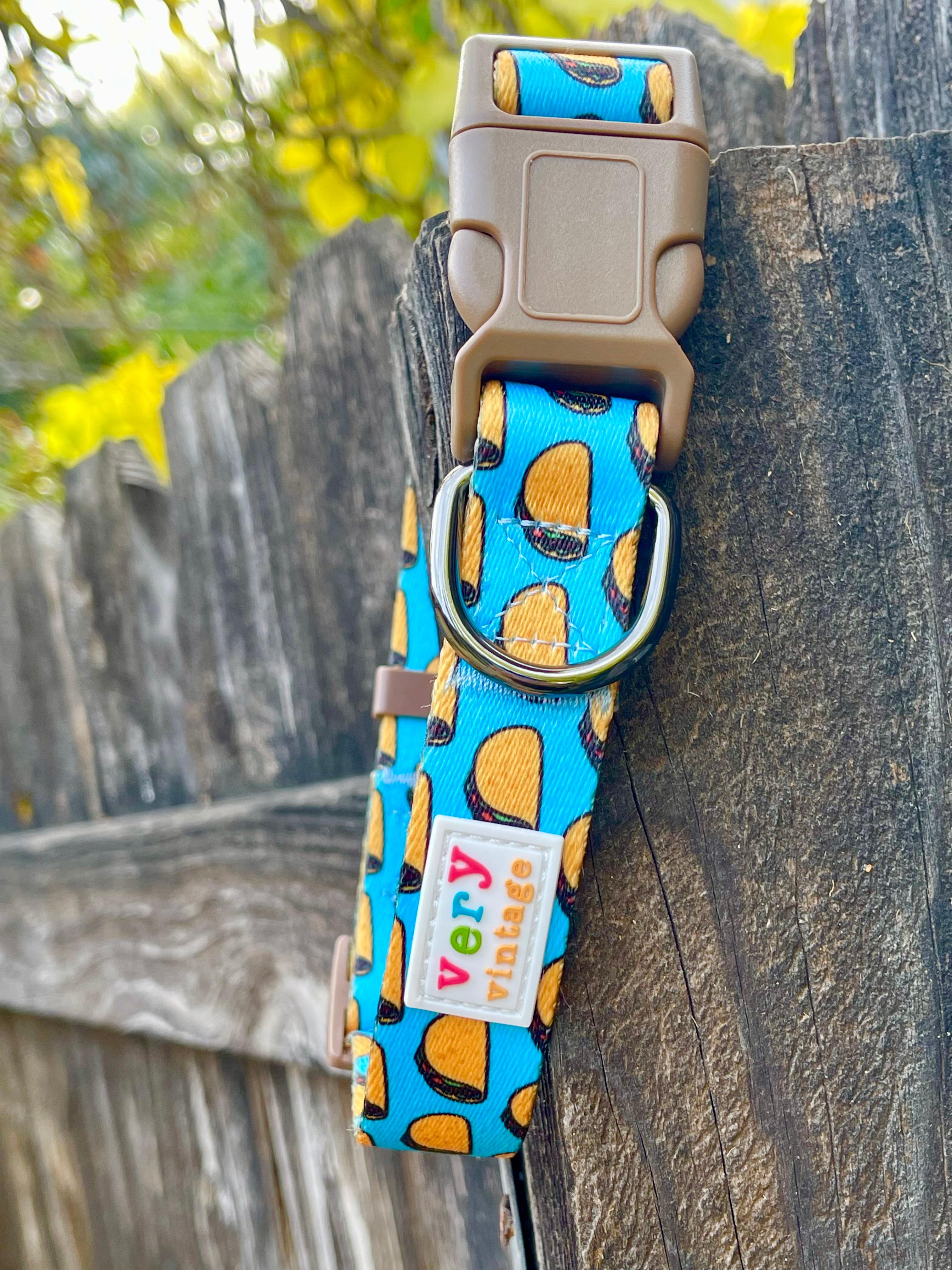 Bring the party wherever your pup goes with our Taco Tuesday Dog Collar 🌮🎉 Featuring a bold blue background sprinkled with cheerful tacos, this playful food-inspired design is made for pups who serve main-character energy on every walk. Whether it’s Taco Tuesday or just a regular ol’ strut around the block, this collar brings the fiesta.