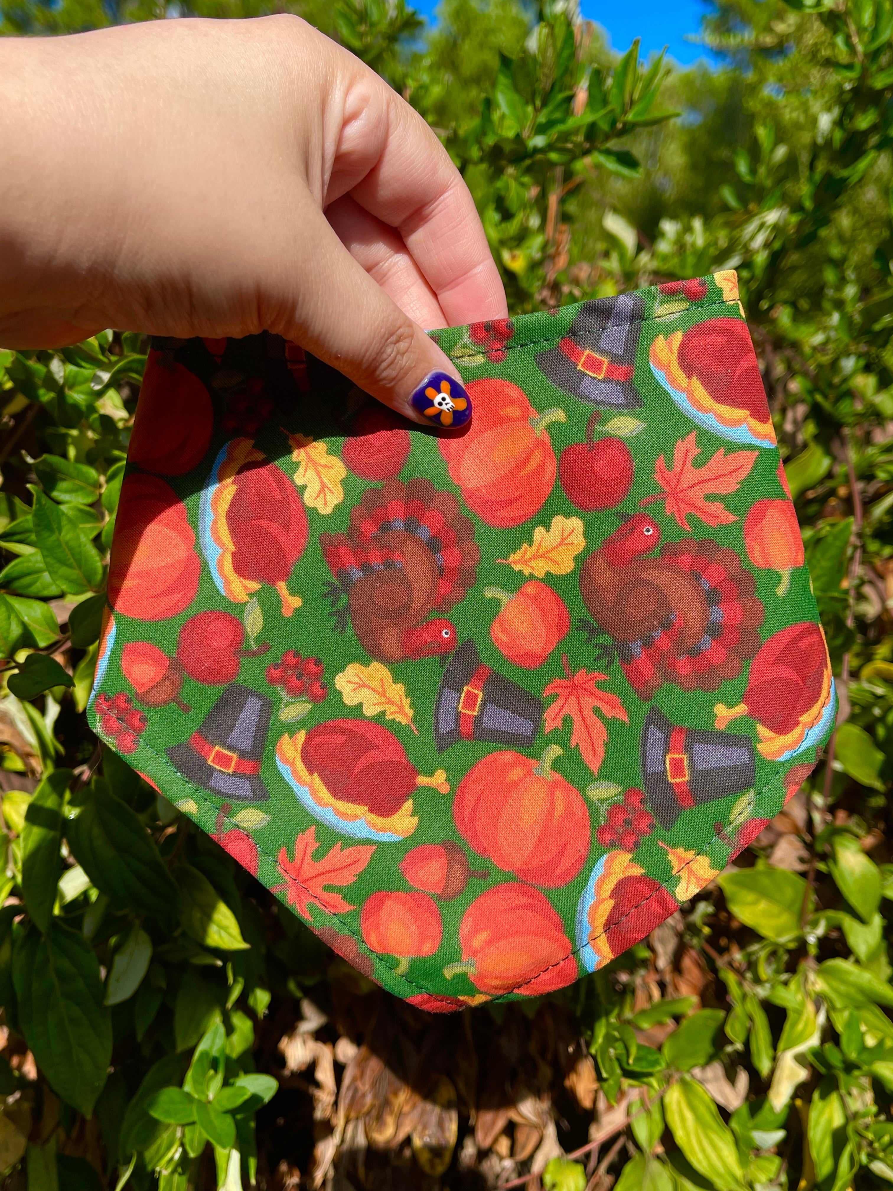 Time to gobble βtil you wobble! π¦π Our Thanksgiving Feast bandana is a cozy celebration of all things autumn - pumpkins, pies, and golden leaves scattered across a rich green background. Whether your pup is posing for family photos, waiting for turkey scraps, or joining the post-dinner walk, this bandana makes every moment festive. π₯§πΎ